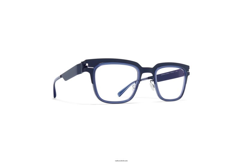 Made of lighweight stainless steel, RAYMOND in A62-Indigo/deep Ocean with Clear lenses is a square shaped optical frame from the MYKITA ACETATE RINGS collection. Handcrafted in Berlin.