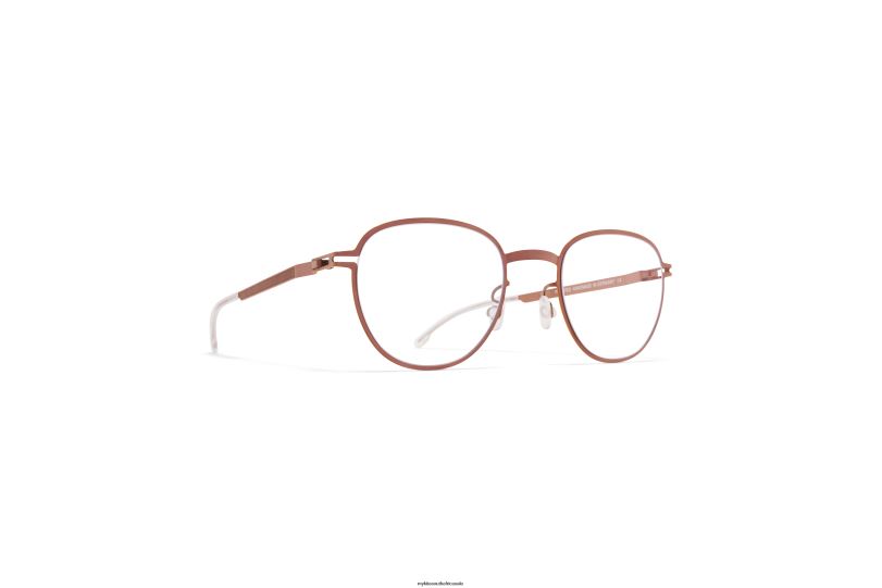 Made of lighweight stainless steel, ML09 in Shiny Copper/Leica Yellow Edges with Clear lenses is a panto shaped optical frame from the MYKITA | LEICA collection. Handcrafted in Berlin.