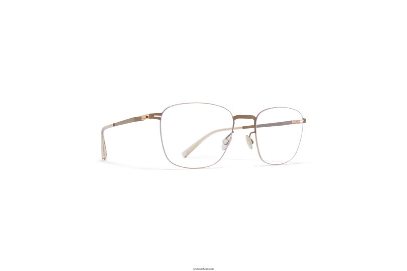 Made of ultra light stainless steel, HARU in Champagne Gold/Taupe Grey with Clear lenses is a square shaped optical frame from the MYKITA LESSRIM collection. Only 0.5 millimetres wide, the stainless steel rim lies flush in the groove of the lens perimeter. Handcrafted in Berlin.