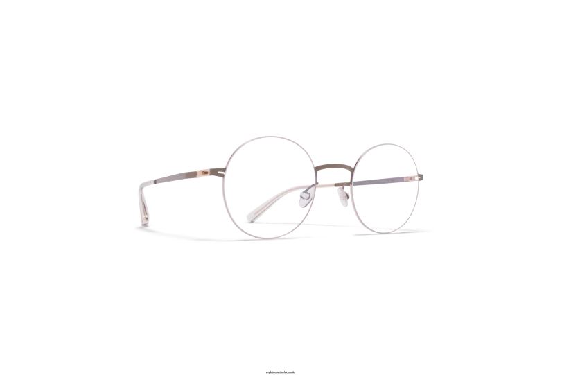 Made of ultra light stainless steel, KAYO in Champagne Gold/Taupe Grey with Clear lenses is a round shaped optical frame from the MYKITA LESSRIM collection. Only 0.5 millimetres wide, the stainless steel rim lies flush in the groove of the lens perimeter. Handcrafted in Berlin.