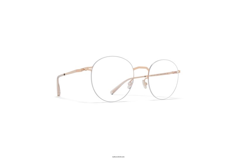 Made of ultra light stainless steel, TOMOMI in Silver/Champagne Gold with Clear lenses is a panto shaped optical frame from the MYKITA LESSRIM collection. Only 0.5 millimetres wide, the stainless steel rim lies flush in the groove of the lens perimeter. Handcrafted in Berlin.