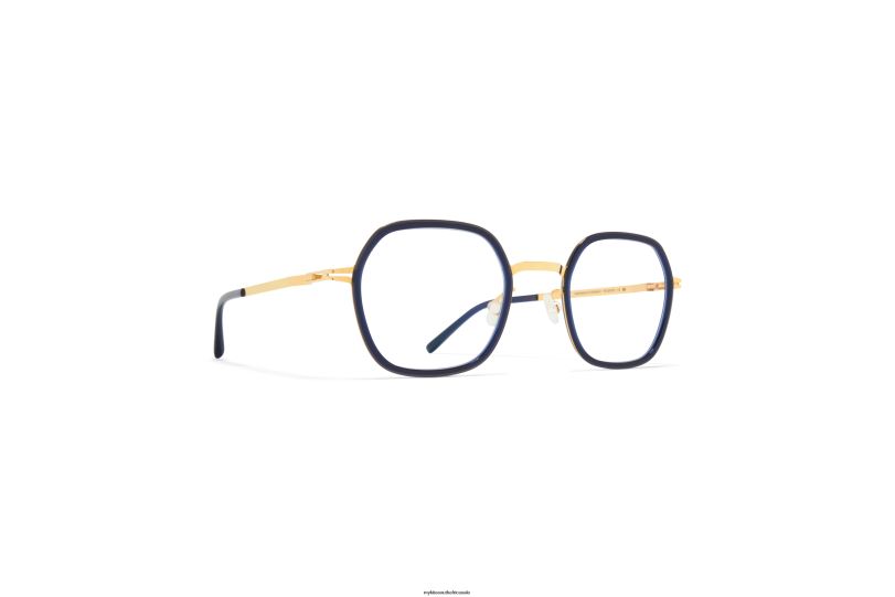 Made of lighweight stainless steel, VEN in A76-Glossy Gold/Milky Indigo with Clear lenses is a square shaped optical frame from the MYKITA ACETATE RINGS collection. Handcrafted in Berlin.