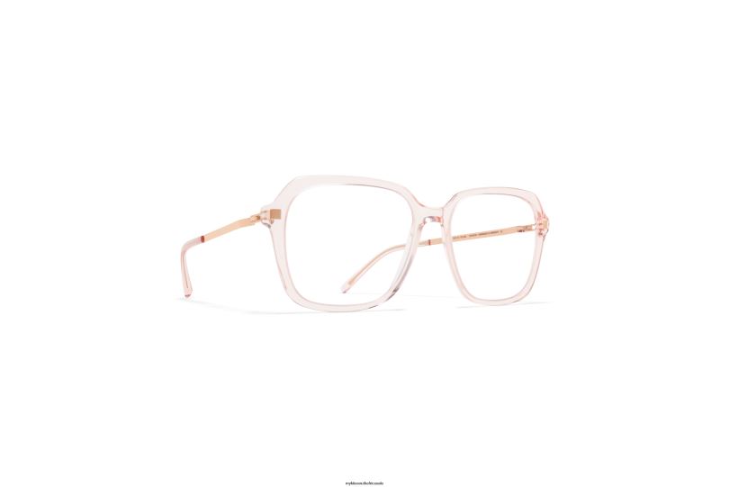 Made of lightweight stainless steel and slender acetate, AMKA in C20 Rose Water/Champagne Gold with Clear lenses is a square shaped optical frame from the MYKITA LITE ACETATE collection. Handcrafted in Berlin.