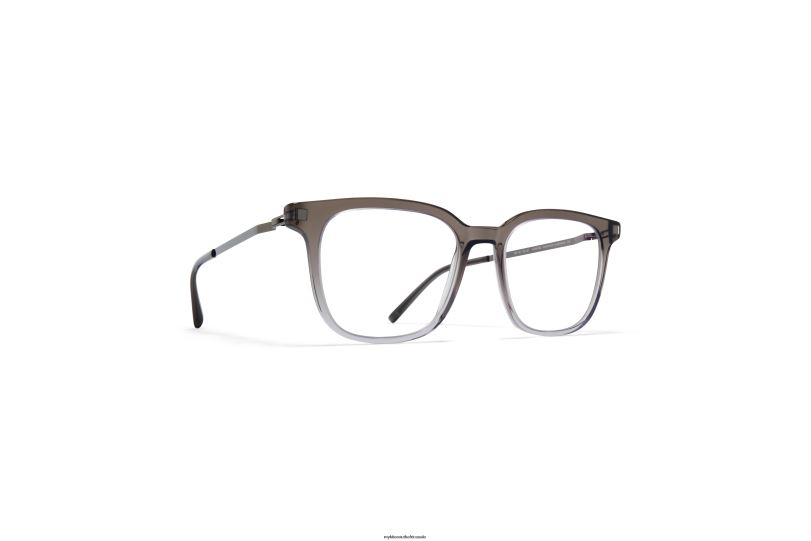 Made of lightweight stainless steel and slender acetate, MATO in C42 Grey Gradient/Shiny Graphite with Clear lenses is a square shaped optical frame from the MYKITA LITE ACETATE collection. Handcrafted in Berlin.