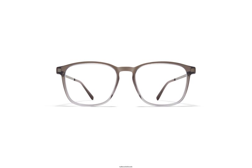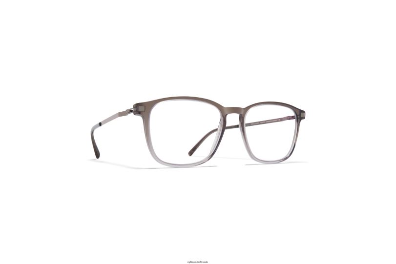 Made of lightweight stainless steel and slender acetate, TUKTU in C42 Grey Gradient/Shiny Graphite with Clear lenses is a square shaped optical frame from the MYKITA LITE ACETATE collection. Handcrafted in Berlin.