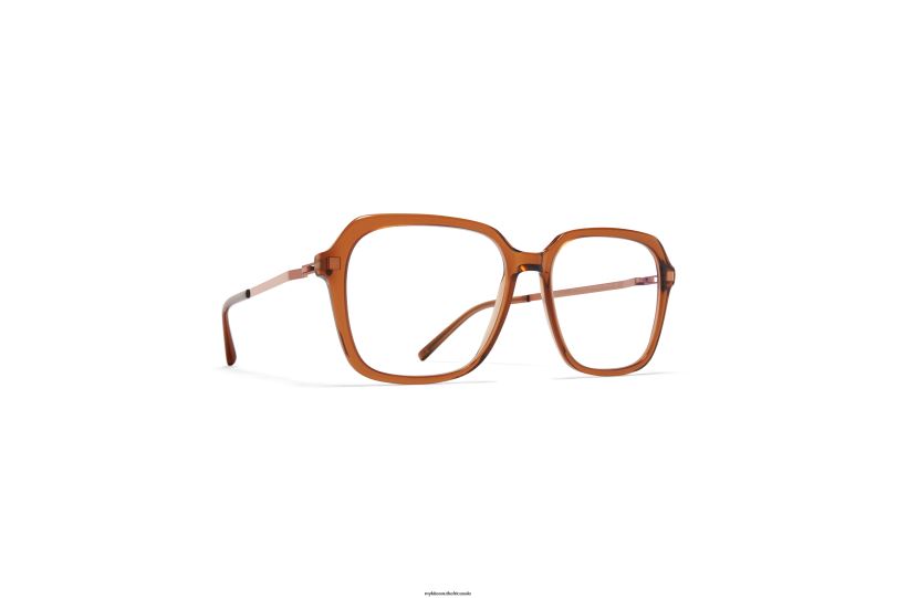 Made of lightweight stainless steel and slender acetate, AMKA in C73 Topaz/Shiny Copper with Clear lenses is a square shaped optical frame from the MYKITA LITE ACETATE collection. Handcrafted in Berlin.