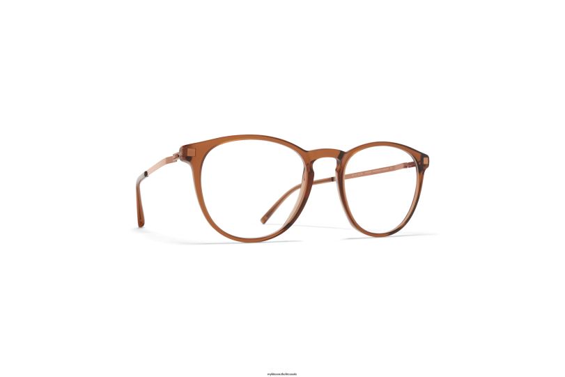 Made of lightweight stainless steel and slender acetate, NUKKA in C73 Topaz/Shiny Copper with Clear lenses is a panto shaped optical frame from the MYKITA LITE ACETATE collection. Handcrafted in Berlin.