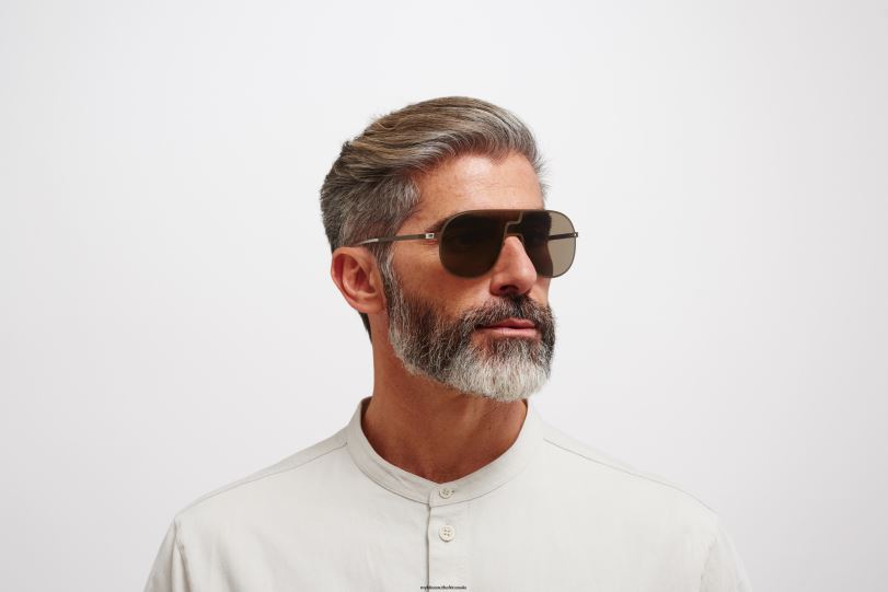 Made of lightweight stainless steel, STUDIO12.1 in Sepia with Sepia Brown lenses is an aviator shaped sunglass frame with an asymmetrical lens design from the MYKITA STUDIO collection. Handcrafted in Berlin.
